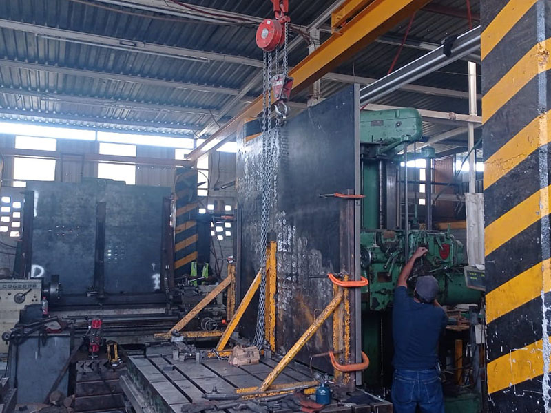 Contamos con equipos especializados como mandriladoras y tornos verticales capaces de manejar diámetros de hasta 1.80 metros, lo que nos permite realizar trabajos precisos en la fabricación y reparación de bujes, cigüeñales, carneros, engranes y poleas. Asimismo, nuestras mandriladoras nos permiten realizar operaciones de maquinado complejas, incluyendo el maquinado de platinas, barrenado, fabricación de ranuras, rectas y en T, fabricación de mesas y bases personalizadas.